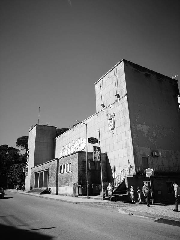 Through the years, the regime developed its own architectonical language – commonly known as Português Suave (literally meaning Soft Portuguese)– which consisted of a formal syncretism of modernist imported influences together with traditional regionalisms of nationalist inspiration. However, the design of buildings related to a more mundane type of culture, like Cinemas, Theaters and Hotels, would sometimes be relieved of the over-local imprint and might showcase imported ‘’showbiz’’ aesthetics, coming from abroad. The ‘’Cine-Teatros’’ had the double virtue of breaking the monotony of the built cityscape as well as of the often boring provincial life.