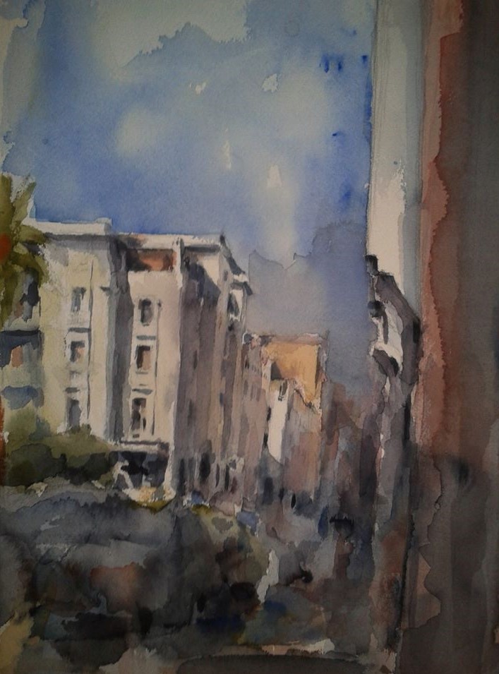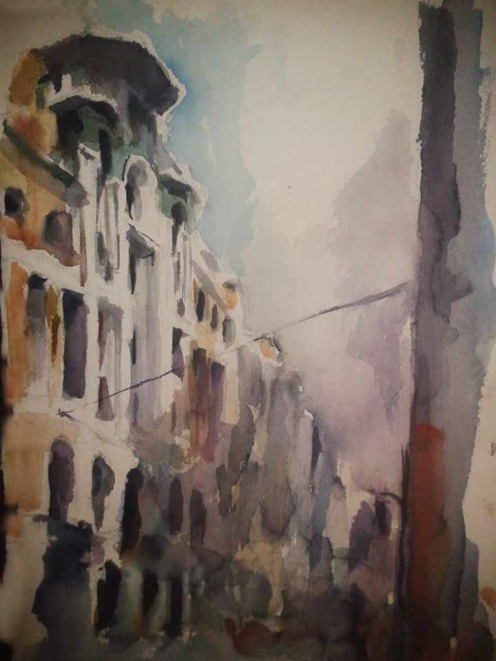 Volviendo a la pintura, siendo el blanco la base cromática para gran parte de los edificios que pintas, eso hace que, en tu opinión, la acuarela sea la técnica más apropiada para representarla?