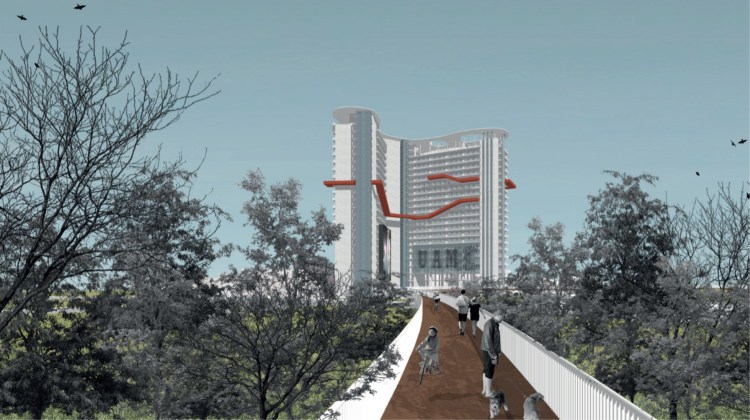 It really caught our attention the quantity of canceled large projects throughout the city and the passiveness that we co-habit with them, as if it is something normal. So we started to gather information about many of those buildings and publishing it in the blog. Then we evolved to the Life of Abandoned Buildings, with the purpose to put a light on the subject but also adding a regeneration proposal, making it more tangible. We used an abandoned structure existing in Hacıosman for more than 20 years – the Grand Prestige Istanbul Hotel – and developed a design concept that would totally redefine the area. Uğur and I investigated the context deeply and developed an inclusive design proposal that aims to build communities through education, culture, sports and its connection to the surrounding forests. It’s a big contrast with the ‘’black hole’’ we have there today…