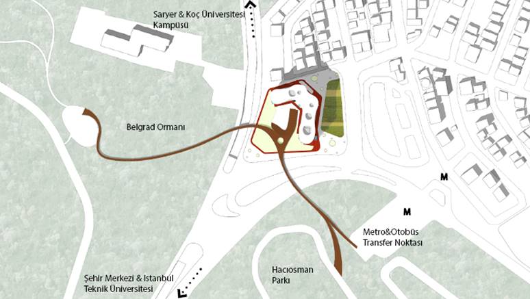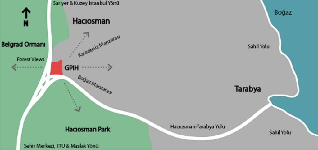 Yeşil alan bağlantısını sağlamak adına, GPIH’nin hemen yanı başındaki metro istasyonunu ve otobüs duraklarını Belgrad Ormanı ve Hacıosman Korusuna bağlayacak bir üst geçit tasarlayarak yeşil alana erişimi kolaylaştırmayı amaçladık. . Üst geçidin GPIH binasına dokunduğu alanda ise bölgede mevcut olmayan bir meydan/agora yaratmayı öneriyoruz.